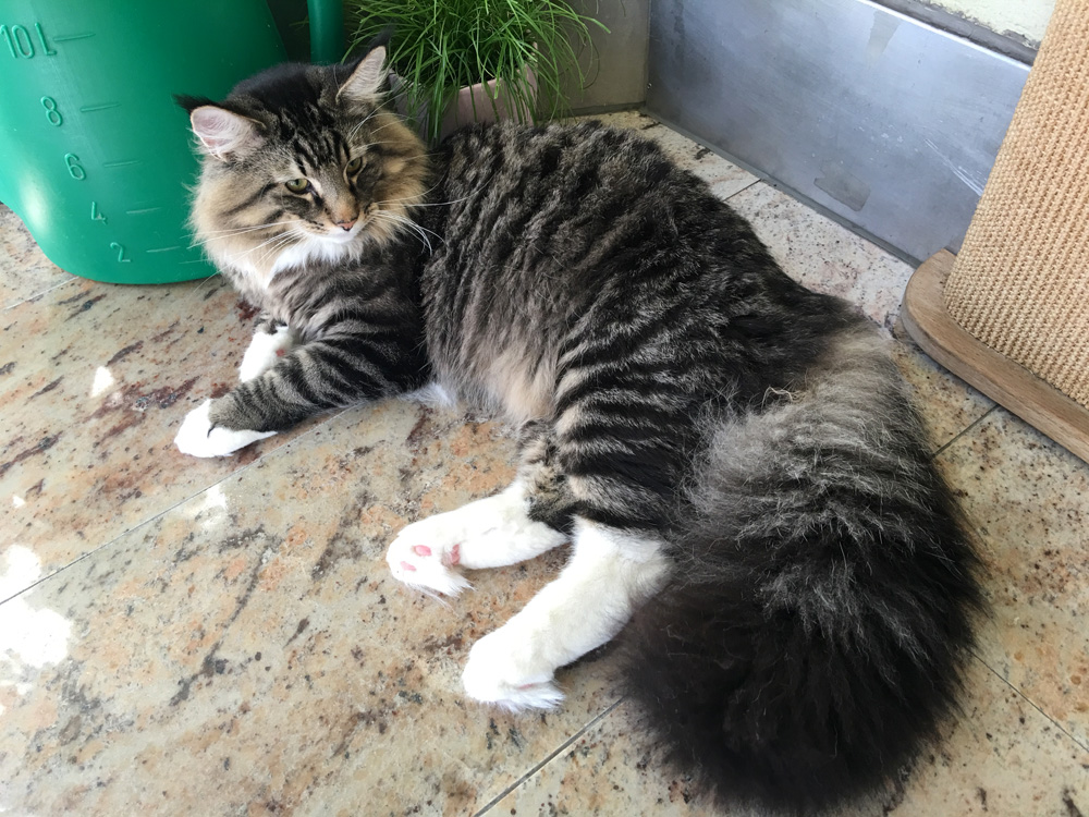 schwarz getigert mit weiß