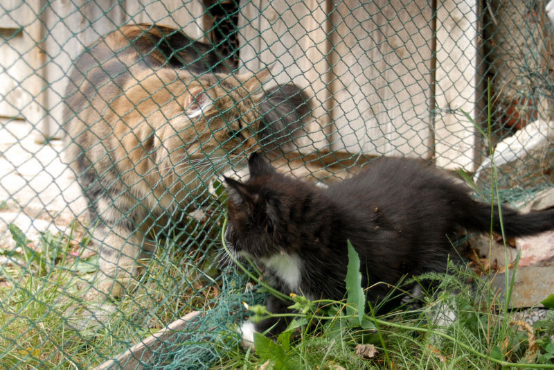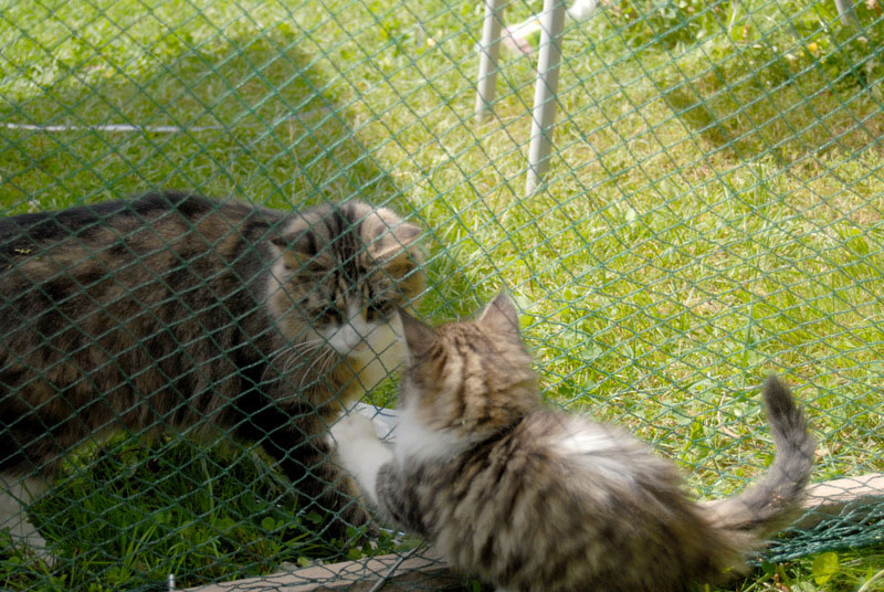 Natürlich unter unserer Aufsicht und in einem nochmals extra abgezäunten Katzenkindergarten.